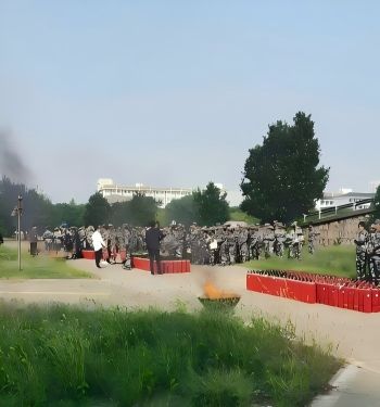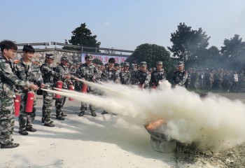 应急疏散逃生演练根据工作预案在北苑、西苑、南苑三个宿舍区域同时展开:释放火灾模拟烟雾,警报声响起,迅速打开所有消防通道大门,引导学生正确、有序、快速撤离至指定的安全地带,负责人总结逃生过程中存在的问题。灭火技能培训在老驾校场地分批次进行:讲解防范火灾知识、常见灭火器的使用方法及灭火注意事项,学生分组逐一使用灭火器灭火,引导学生撤离模拟火场。